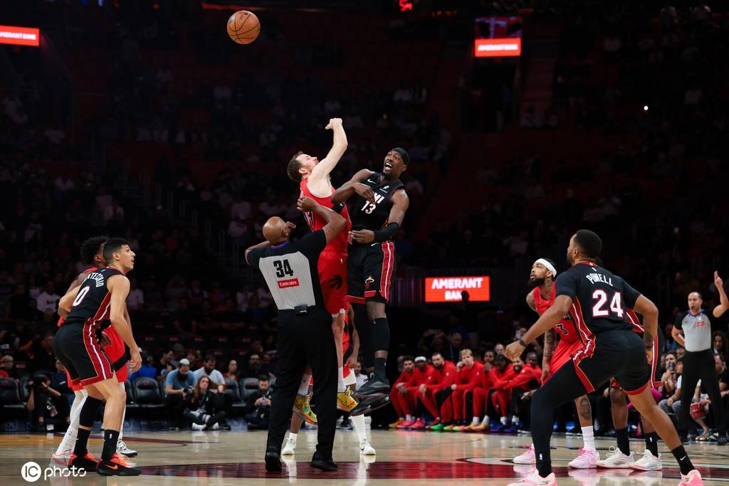 热火队首发:巴姆-阿德巴约、诺曼-鲍威尔、戴维恩-米切尔、安德鲁-维金斯、西莫内-冯泰基奥